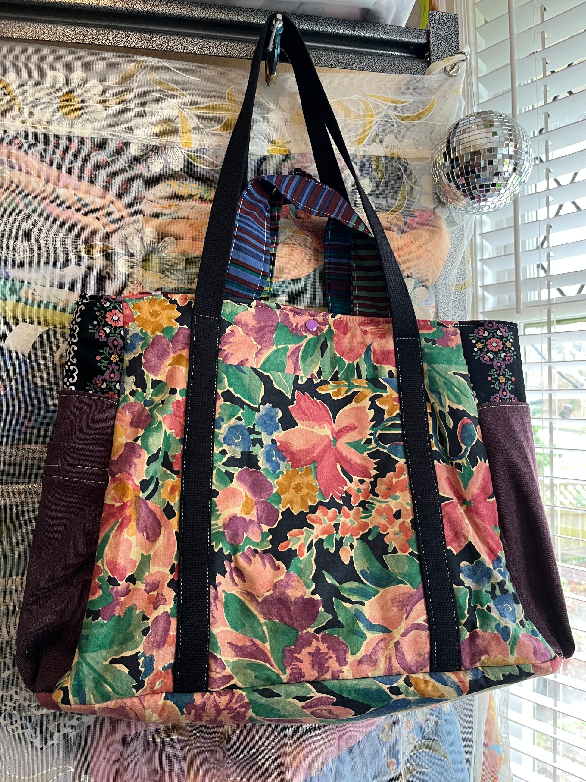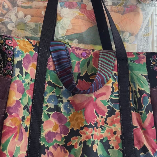 Made from upcycled vintage fabrics, it combines functionality with thoughtful design. With a padded structure and flat bottom, the tote stands independently while keeping its shape. Five roomy pockets, two strap lengths, and plenty of space make it a carry-all you’ll reach for all year long. ♻️✨