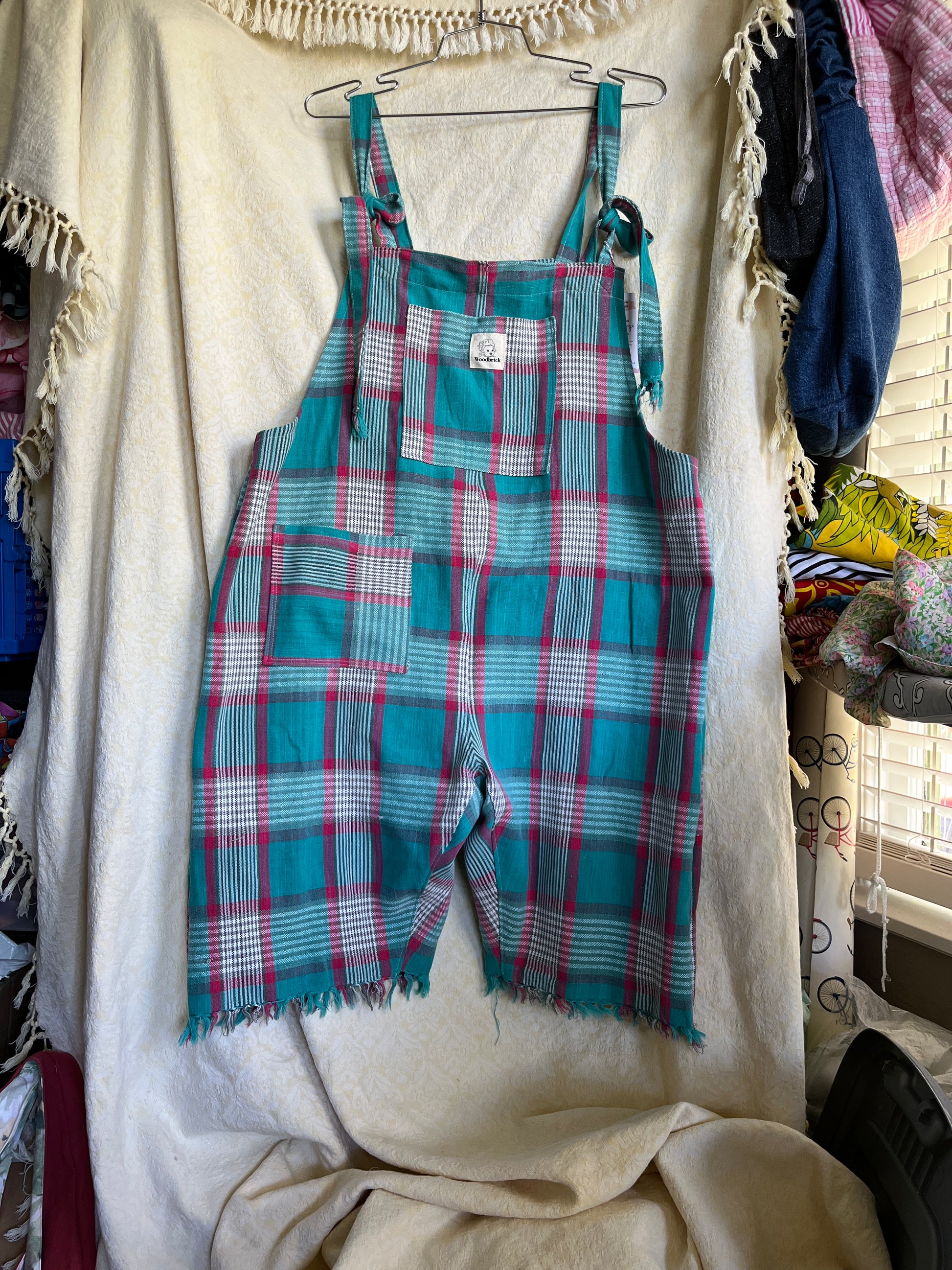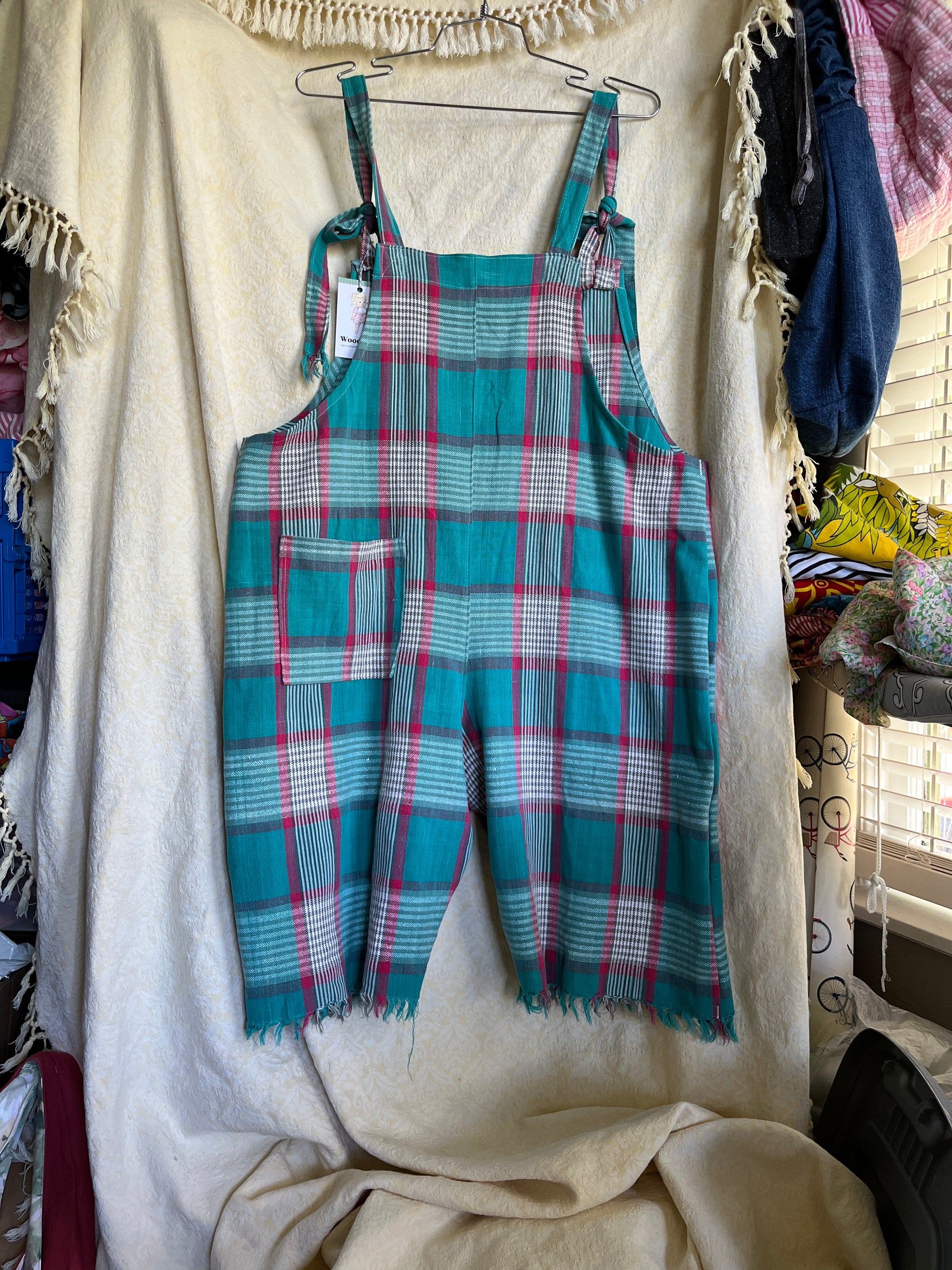 Satisfy your inner child while expressing your passion for sustainability, all while being supremely comfortable in a relaxed fit overall for ALL! Tie straps can be slipped on and off without undoing for stress free wearing. Customizable fit can be adjusted as your body changes and with different layers underneath through the seasons. Three pockets - one on the front and one on the back plus a handy top bib pocket.