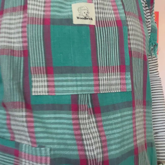 Machine wash in a delicate bag to prevent tangled straps. Hang or machine dry. Materials vary widely and will wash and wear depending on unique textile content, material type and source. Vintage and repurposed fabric may include small flaws, signs or ageing or repair. This is an evident fact of upcycling and contributes to the character of Woodbrick bags.