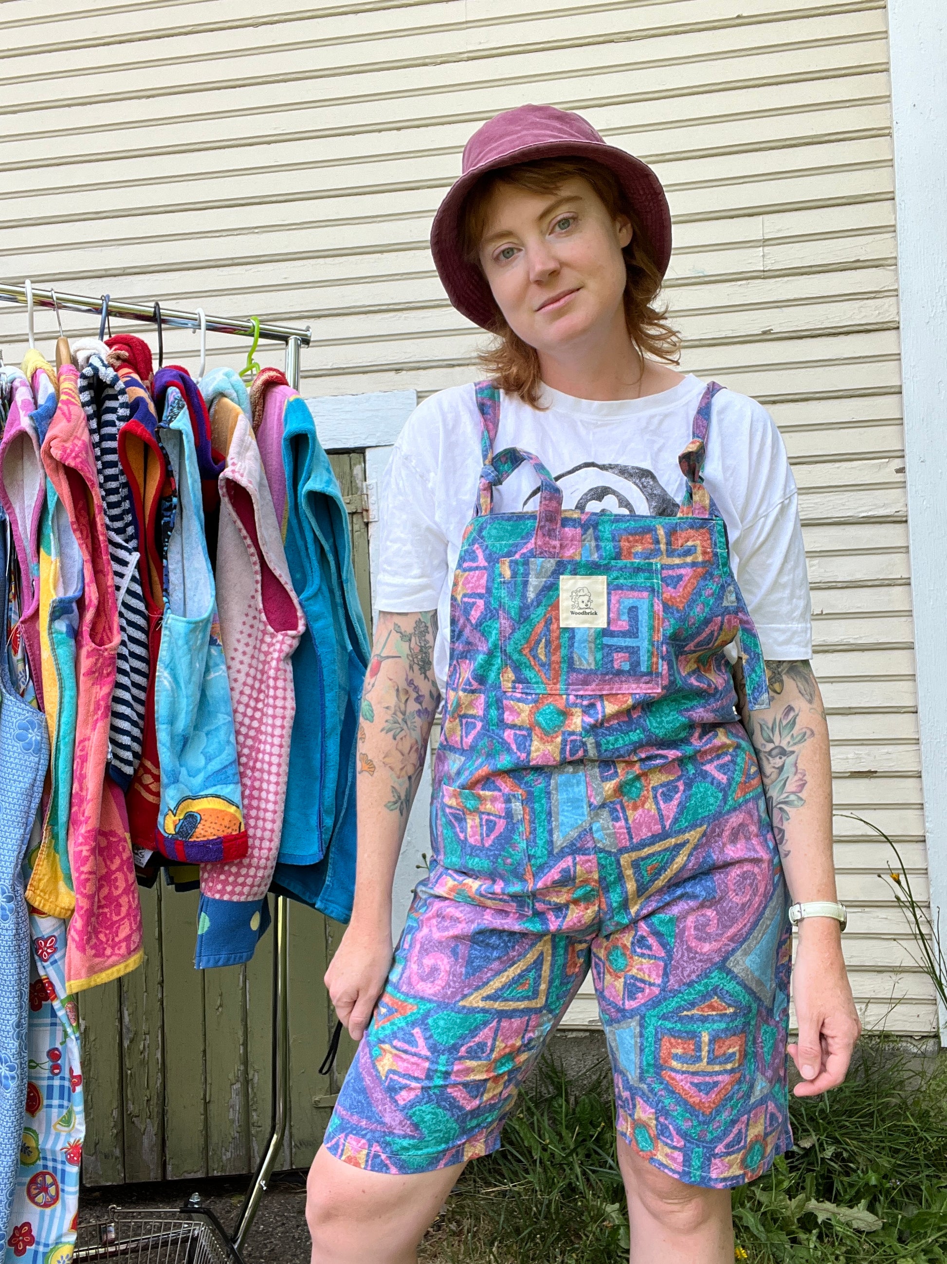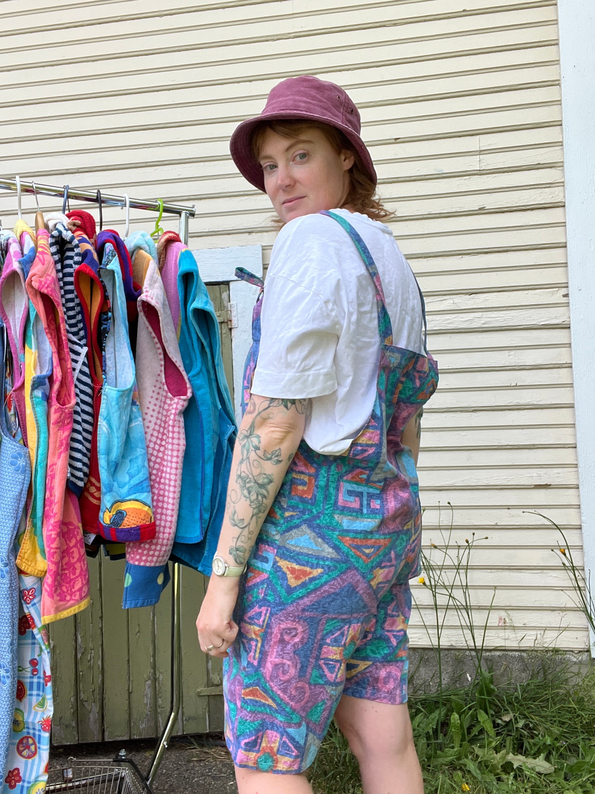 Satisfy your inner child while expressing your passion for sustainability, all while being supremely comfortable in a relaxed fit overall for ALL! Tie straps can be slipped on and off without undoing for stress free wearing. Customizable fit can be adjusted as your body changes and with different layers underneath through the seasons. Three pockets - one on the front and one on the back plus a handy top bib pocket.