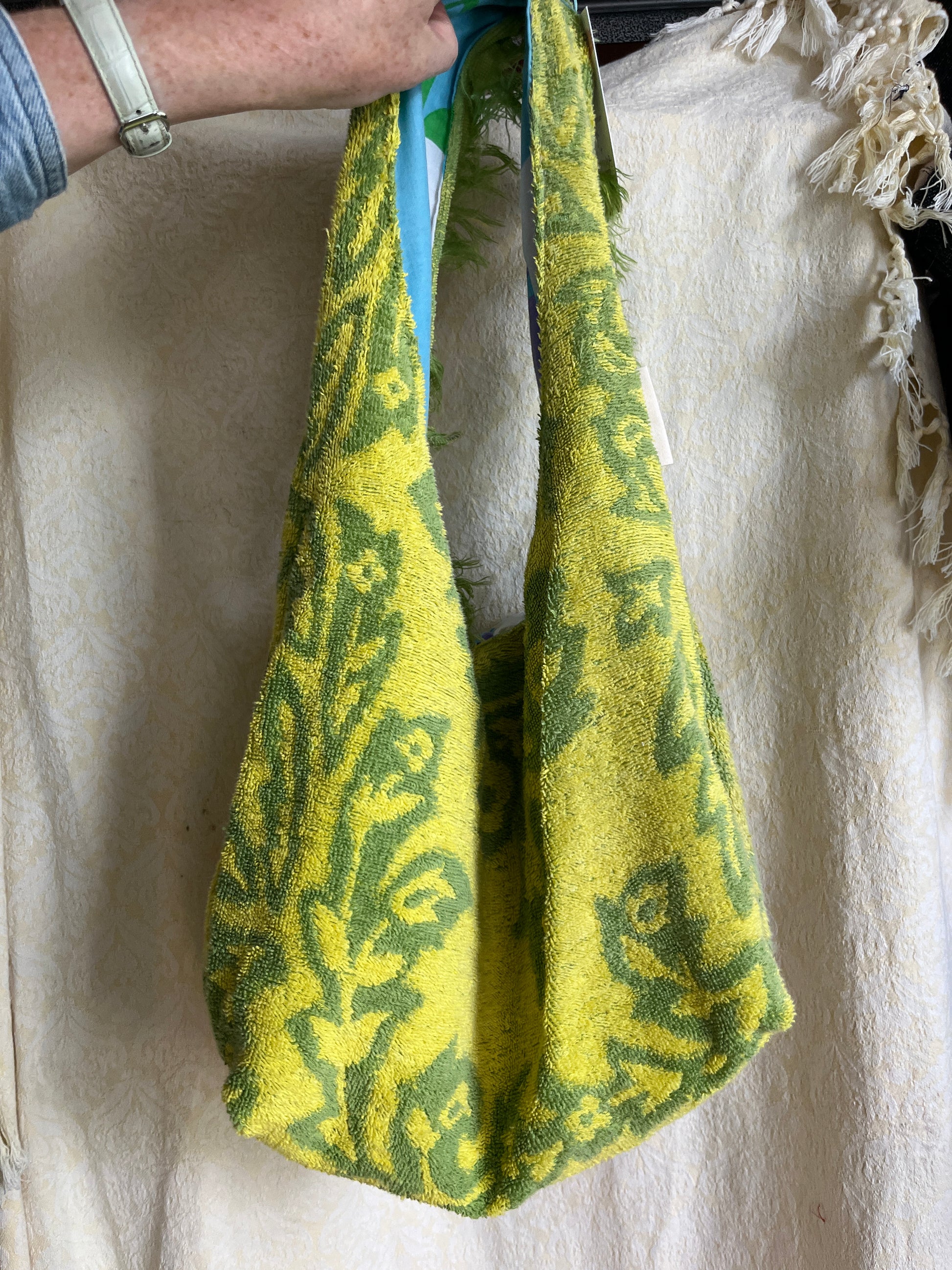 A simple and timeless teardrop shaped bag with one handle for carrying or wearing on your shoulder. Reversible, with inner (or outer!) contrast slide pocket. Two ties for securing the opening. Perfect as an everyday extra bag (think market trips, beach days, or library hauls) or as your main purse if you love a roomy, laid back style. All bags vary in finished measurements, but are either a short or longer handle (with the possibility for crossbody wearing on some bodies) as described below.