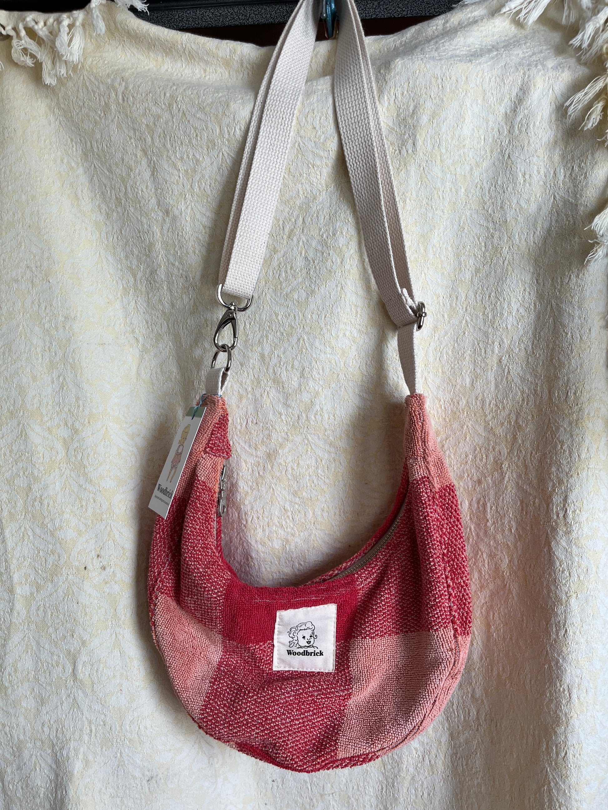 miniCrescent bags are a zippered, crossbody bag that curves to the body and is comfortable to wear. The same shape as Woodbrick Classic Crescent, but a bit smaller! mini’s all include a buckle or clasp for easy wearing and release under a backpack, a winter coat or while bike riding.