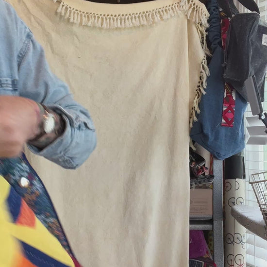 Textiles are sourced secondhand and have been made, used and loved before taking on new life as jackets. While materials have been carefully sourced and vetted for quality, signs of fabric age, wear and stains are possible throughout the finished garment. This is an evident fact of upcycling and adds to the character of finished items. Please consider this carefully before purchasing items as no returns are accepted.