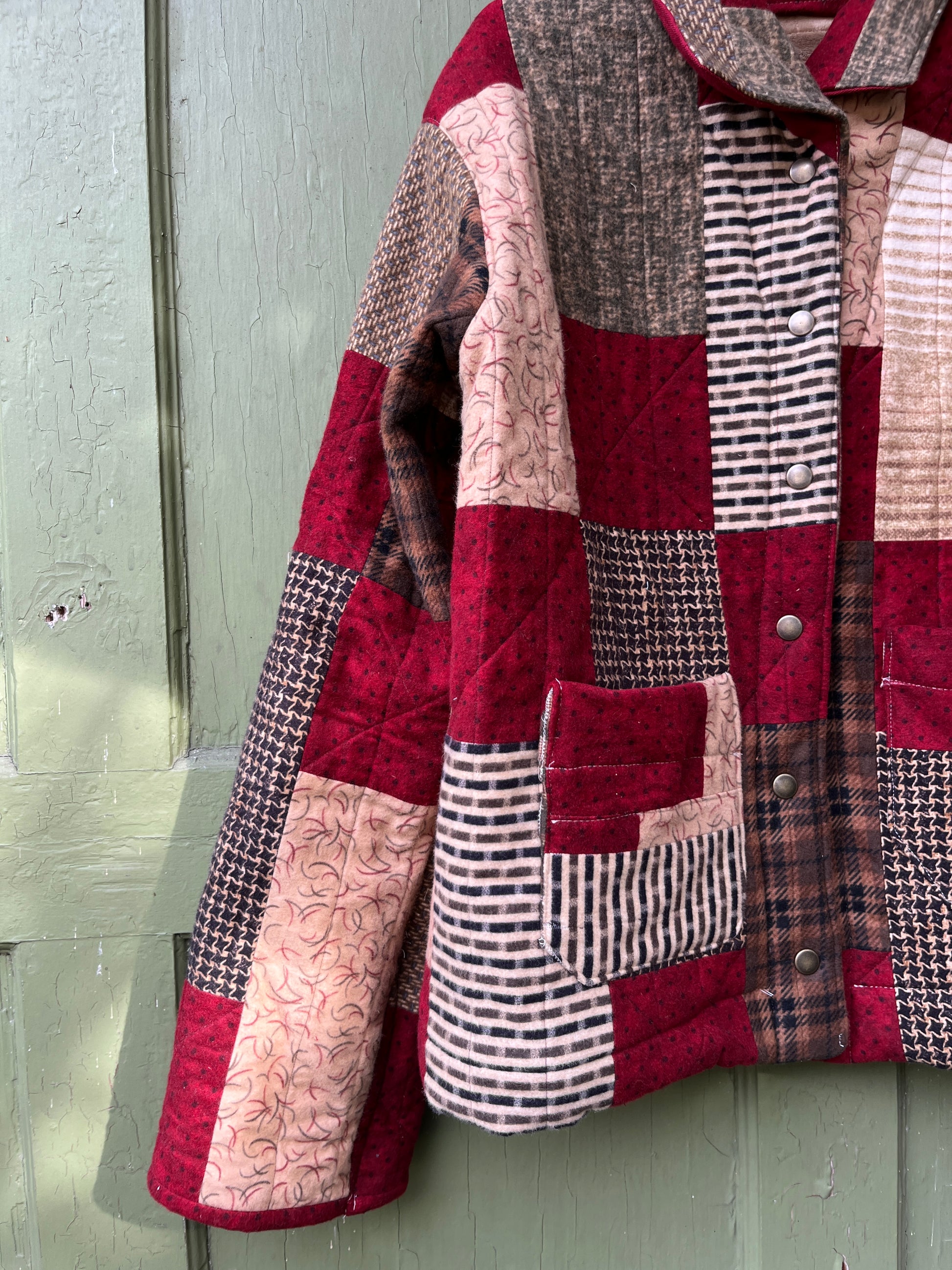 Wonderfully soft and warm flannel patchwork lined with super soft fleece! A closer fitting jacket that fits "medium" but deviates from the listed size chart. Pit to pit (across the chest) 21".