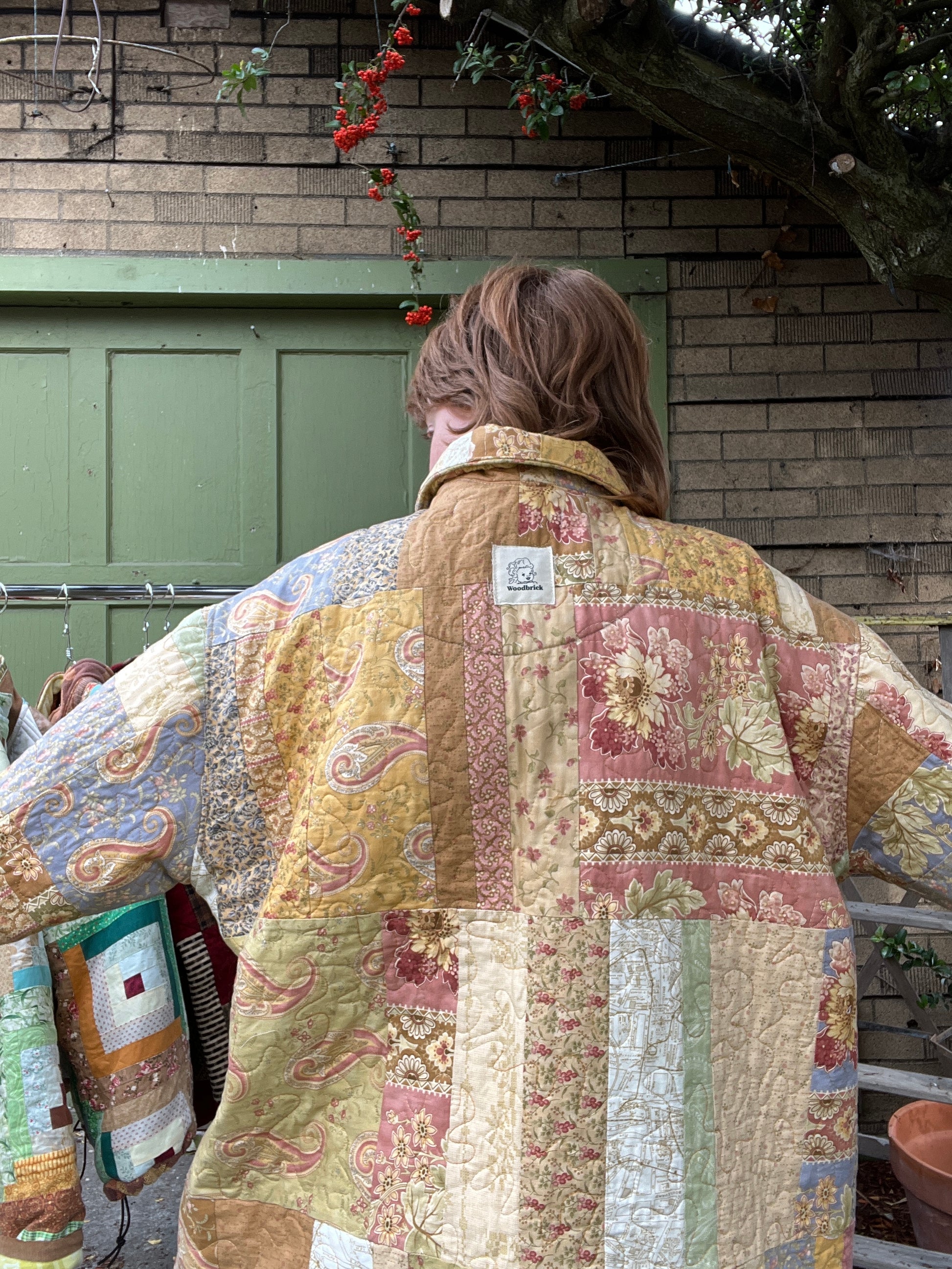 Beautiful warm natural colours quilted with a subtle multicolour thread. A different cut than the usual woodbrick coat, with a set-in shoulder for a more traditional or fitted style. For this reason the size does not correlate with size chart provided. Fit Xl and up depending on desired fit.