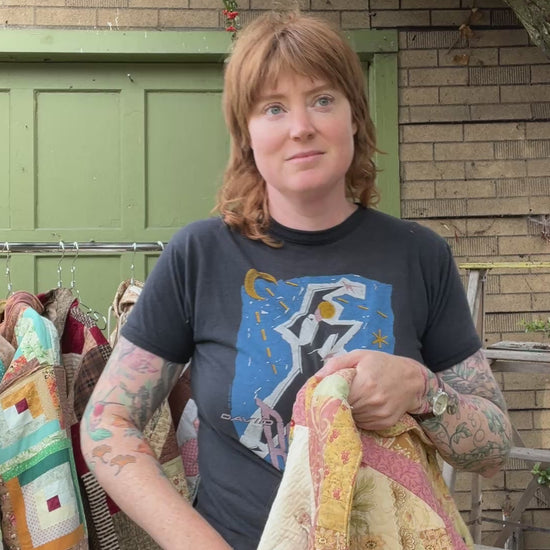 What truly sets these coats apart is their story. Every piece is handmade on Vancouver Island from a carefully curated selection of secondhand quilts, blankets, and coverlets—ranging from vintage heirlooms to more modern textile finds. By sourcing and repurposing these materials locally, we breathe new life into forgotten fabrics, celebrating their unique patterns, textures, and histories.