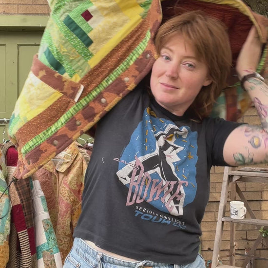 Textiles are sourced secondhand and have been made, used and loved before taking on new life as jackets. While materials have been carefully sourced and vetted for quality, signs of fabric age, wear and stains are possible throughout the finished garment. This is an evident fact of upcycling and adds to the character of finished items. Please consider this carefully before purchasing items as no returns are accepted.