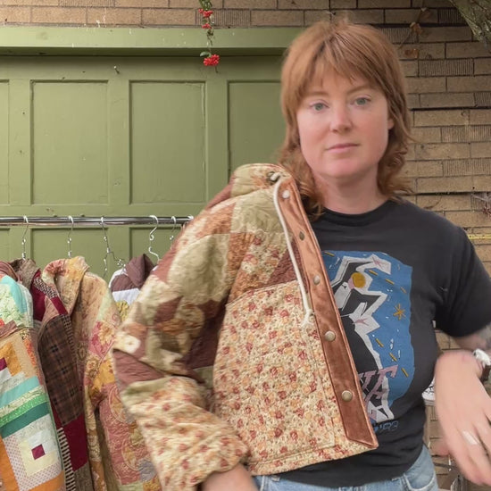 What truly sets these coats apart is their story. Every piece is handmade on Vancouver Island from a carefully curated selection of secondhand quilts, blankets, and coverlets—ranging from vintage heirlooms to more modern textile finds. By sourcing and repurposing these materials locally, we breathe new life into forgotten fabrics, celebrating their unique patterns, textures, and histories.